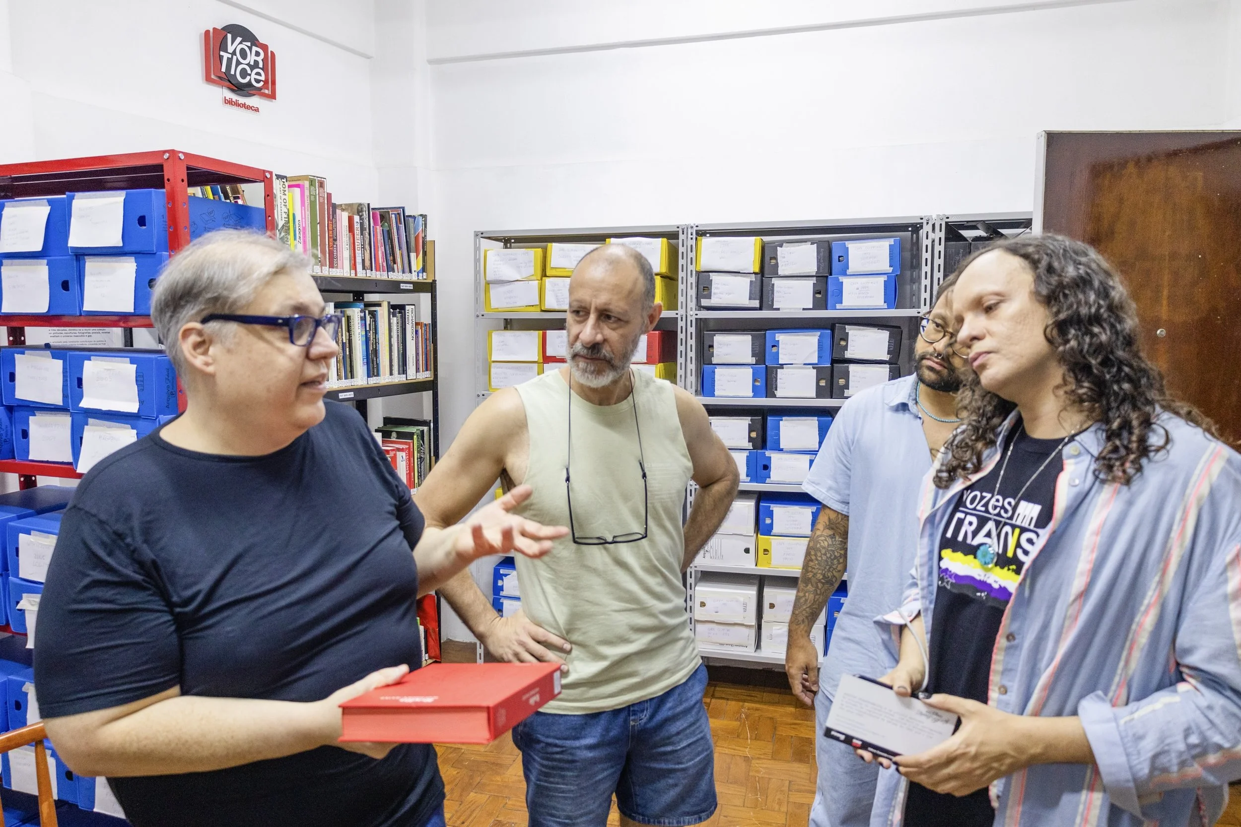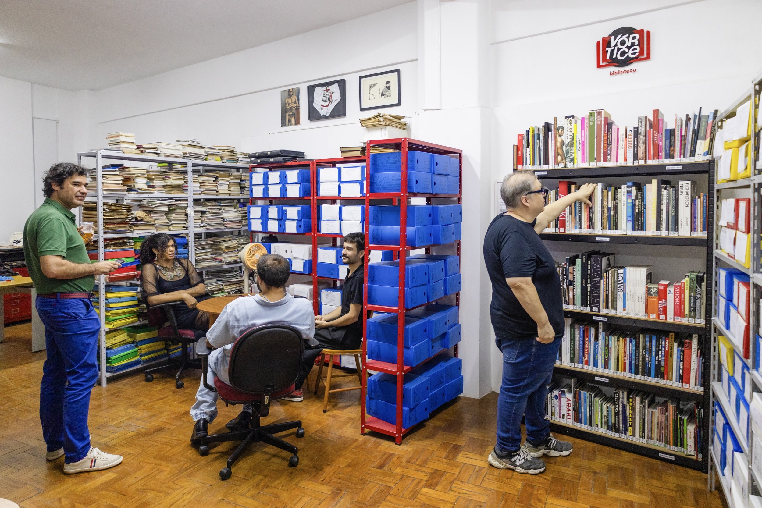 A Biblioteca Vórtice preserva um acervo vivo com cerca de 400 livros raros de arte, incentivando pesquisa, criação e ampliando referências artísticas.